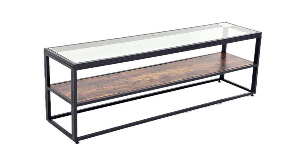 طاولة تلفاز خشب زجاج بهيكل حديد