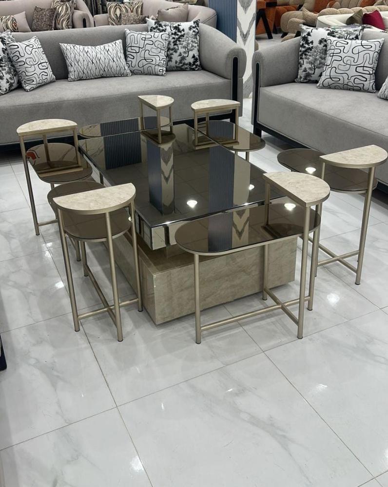 تأتي الطاولة مع 6 طاولات خدمة بدورين، مثالية لتقديم الضيافة بكل أناقة.