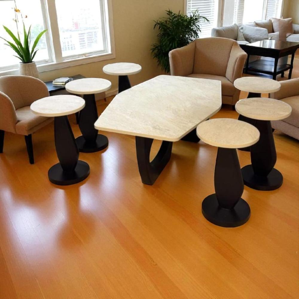 أضف لمسة من الأناقة والرقي إلى منزلك مع طقم الطاولات الرخامية هذا. يتميز الطقم بسطح رخامي أبيض ناعم وقواعد متينة تضفي عليه مظهراً عصرياً وجذاباً بلون البني